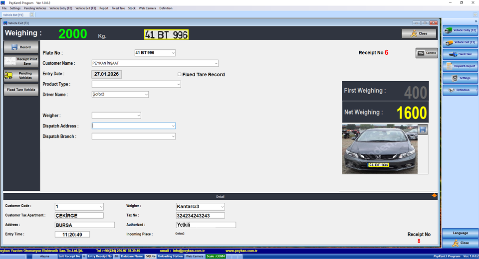 PeyKant Programı; fabrika, üretim tesisleri ve lojistik merkezlerinde araç tartım süreçlerini kolay, hızlı ve güvenilir şekilde yönetmek için geliştirilmiş, modern ve esnek bir kantar yazılımıdır.